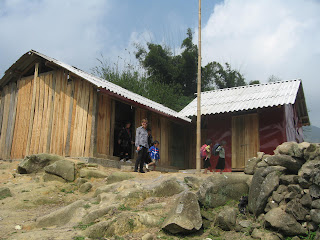 This is the restaurant where we had lunch. They obviously don't get a lot of business so they were very gracious hosts. After lunch we walked up to a nearby cave and then back to the village centre. Although we had come by a different route, the road from Sapa to the village centre is good enough that the hotel van could come there, as arranged, and pick us up. We gave our guide a generous tip because she was fantastic and it was a way of directly giving money to those who need it. Yesterday was one of the highlights of our trip.